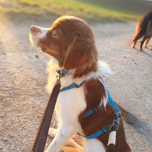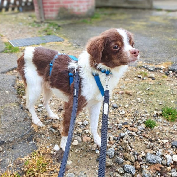 Draußen zeigt sie sich insgesamt unsicher und muss noch viele Umweltreize kennenlernen. Bei Hundebegegnungen möchte sie flüchten. An der Leine läuft Tala aber bereits sehr entspannt, ohne zu ziehen.