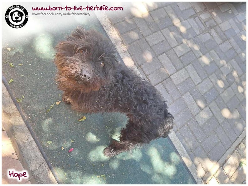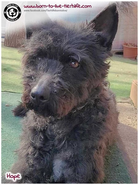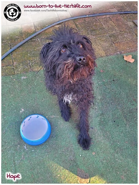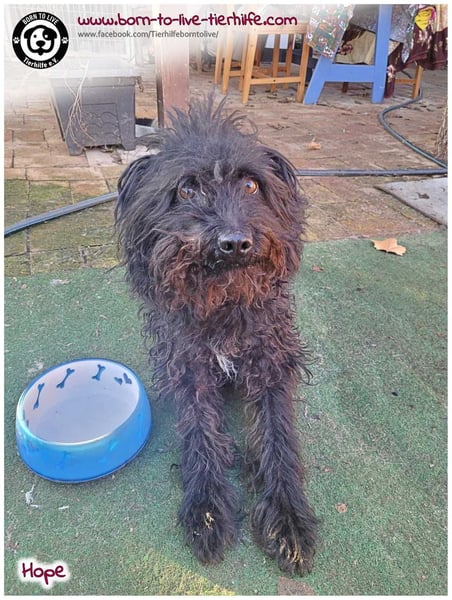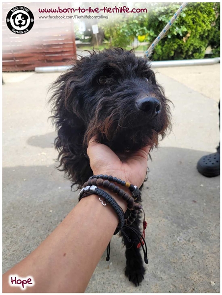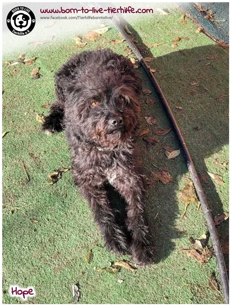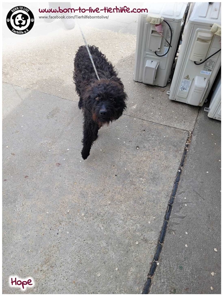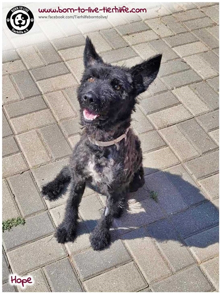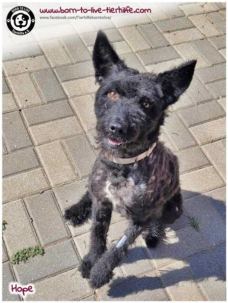Die arme HOPE wurde im Mai 2023 von ihrem ehem. Besitzer zum Einschläfern in der Tierklinik zurück gelassen. Die Klinik sagte: „Nein!“, da es hierfür keinen Grund gab und kontaktierte unsere befreundete, ungarische Tierschützerin Ágnes Pompár, ob sie HOPE zu sich nehmen könnte. Ágnes zögerte nicht lang und nahm das verängstigte Tier zu sich auf Not-Pflegestelle.