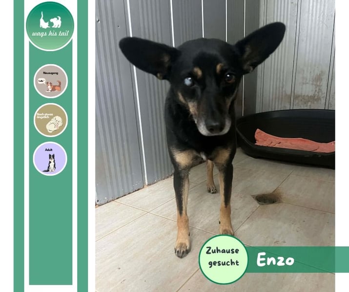 Er ist ein Hund, der mit seiner ruhigen Art und seinem wachen Blick sofort berührt. Enzo bringt eine besondere Mischung aus Gelassenheit, Intelligenz und Herzenswärme mit und wünscht sich Menschen, die ihm Stabilität, Nähe und ein liebevolles Zuhause schenken.