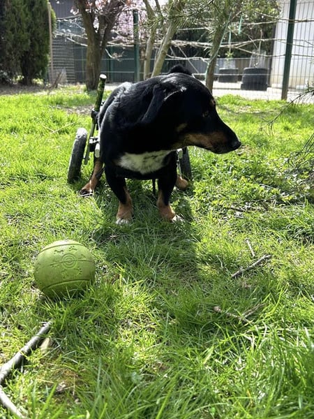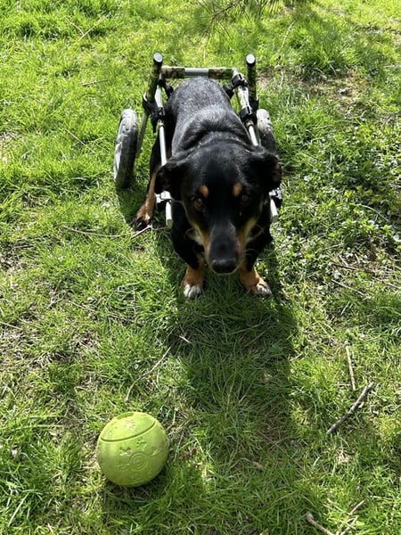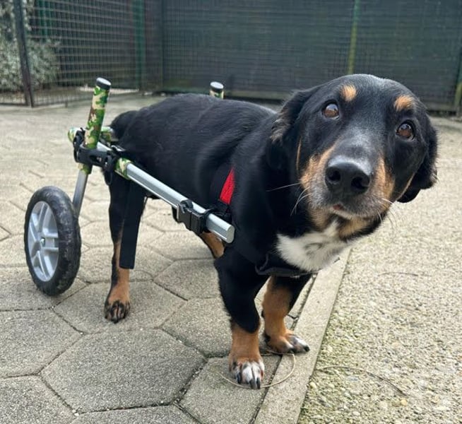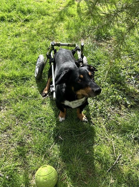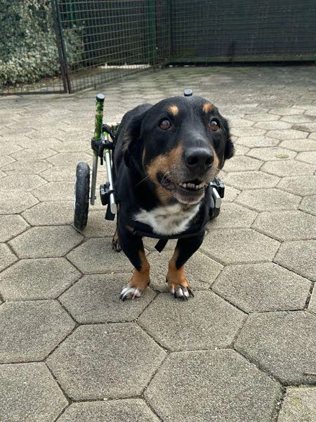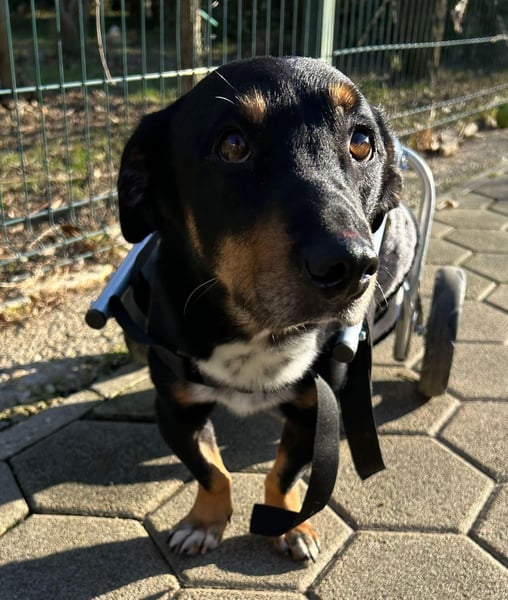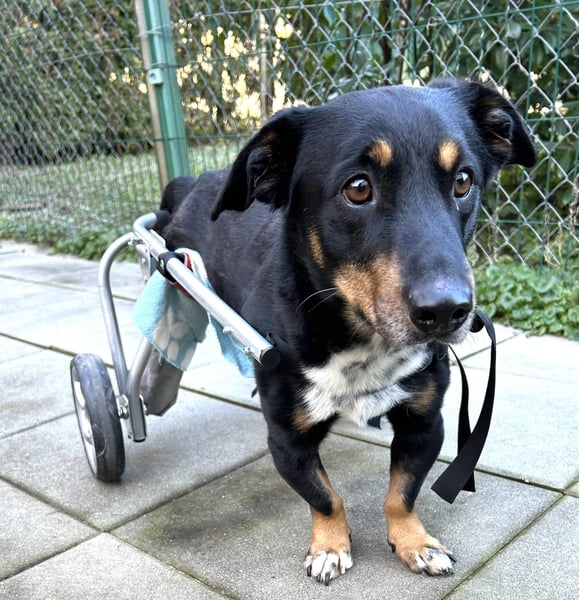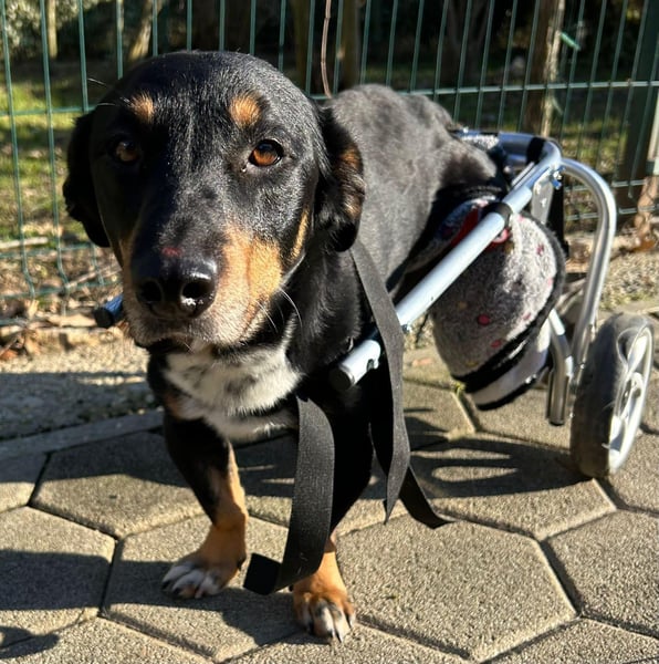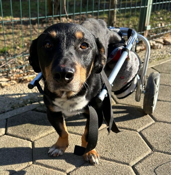 Wunderhund! Nach einer Operation konnte er zunächst nur im Rollstuhl laufen. Mit viel