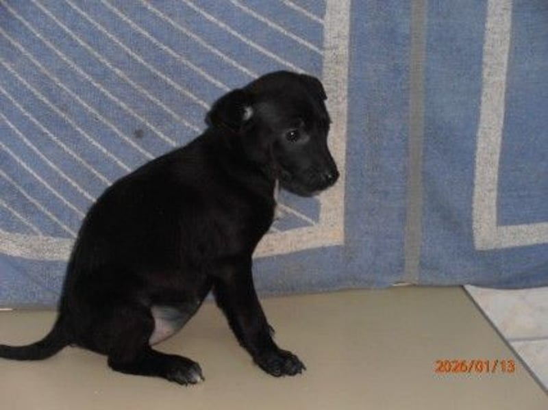 Athene ist ein Welpenmischlingsmädchen mit vermutlich einer mittleren Endgröße. Sie kam leider zusammen mit ihren beiden Geschwistern in den Shelter.