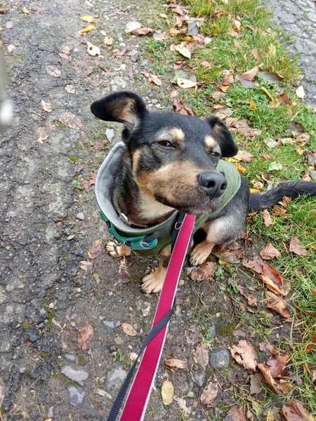 Draußen ist Shane ein toller Begleiter. Er geht fast perfekt an der Leine, ohne zu ziehen bleibt er die meiste Zeit beim Menschen und sucht immer wieder Blickkontakt. Im Straßenverkehr ist Shane noch unsicher, hat hier aber auch innerhalb eines Tages gelernt, dass er nicht die Flucht ergreifen muss wenn ein Auto vorbei fährt, sondern bleibt ruhig, läuft langsam weiter oder setzt sich ab. Die Spaziergänge mit ihm machen viel Freude.