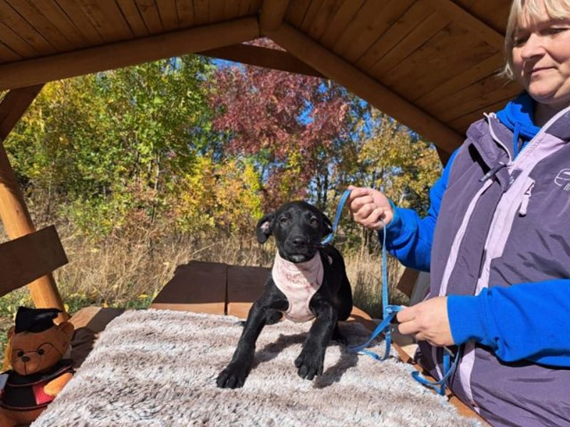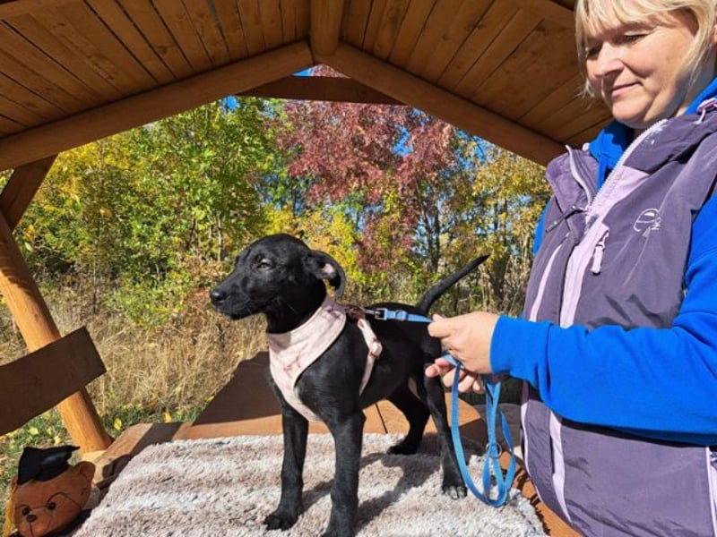 Das schwarze, süße Welpenmädchen mit den hübschen Rehaugen ist ein wahrer Sonnenschein. Sehr mutig, offen und neugierig erkundet sie die Welt. Sie zeigt sich offen und verschmust mit den Helfern und ist immer auf zack und ständig in Bewegung. Wie alle Mädels in ihrem Alter schnüffelt sie für ihr Leben gern. Auch Kauen gehört zu ihren Hobbys neben fressen, schlafen, spielen und entdecken.