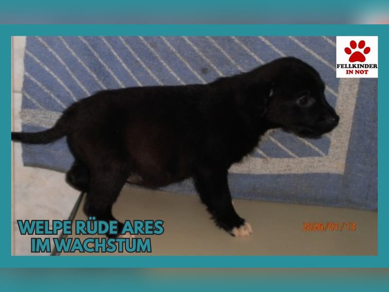 Ares ist ein Welpenmischlingsrüde mit vermutlich einer mittleren Endgröße. Er kam leider zusammen mit seinen beiden Geschwistern in den Shelter.
