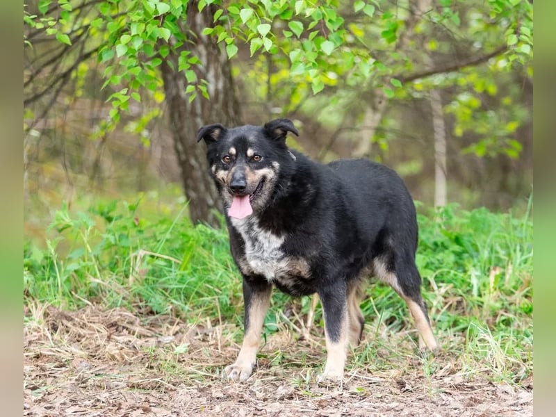Mukha ist eine sanfte und sensible Hündin. Sie sieht aus als wenn sie lächelt und ist sonst aufgeschlossen. Am Anfang wird sie aber zurückhaltend und schüchtern sein gegenüber Fremden, taut aber auch schnell auf , besonders mit Leckerlis. Baden, Pfoten abwischen und Bürsten lässt sie gut mit sich machen. An der leine läuft sie gut , braucht am Anfang aber zeit um sich an alles neuen zu gewöhnen. Deswegen ist es auch besser am Anfang sie doppelt zu sicher (Halsband und Geschirr) oder mit einem Sicherheitsgeschirr. Man sollte sie schrittweise an die komplett neue Umgebung Gewöhnen. Sie wird sich aber trotzdem schnell an alles gewöhnen und erkundet sehr gerne ihr neue Umgebung dann. Auch an die Stadt haben wir sie schon gut gewöhnt und mit Leckerlis ist sie gut durch zu führen, Laute Geräusche und unerwartete Bewegungen können sie aber erschrecken. Das Kommando sitz kann sie sehr gut und ist dafür bereit noch weitere Kommandos zu lernen. Das alleine bleiben klappt gut bei ihr und sie zerstört nichts. Es ist wichtig das man mit ihr nicht grob umgeht, sondern alles mit ruhe und Geduld macht. Sie liegt gerne mit auf dem Sofa oder im Bett und es währe schön wenn sie es in ihrer neuen Familie auch darf.