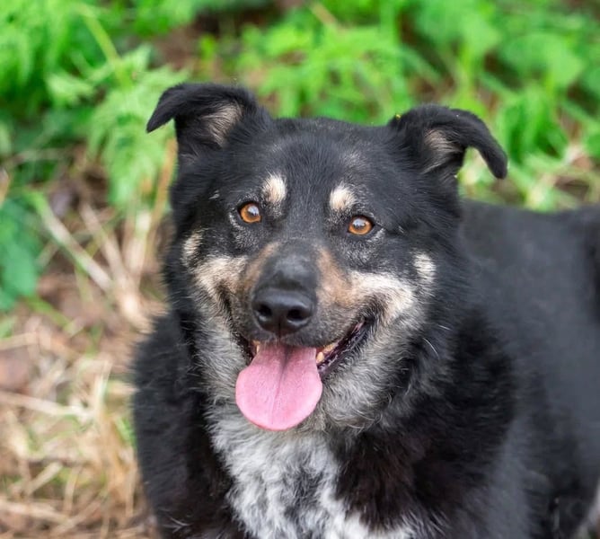 Mukha lebt derzeit mit anderen Hunden zusammen und versteht sich gut mit ihnen und ist nicht streitsüchtig.