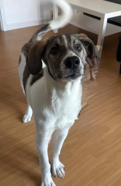 Seine Geschichte: Harvi und seine Geschwister und eine kleine Katzen wurden eines Tages einfach auf die Straße geschoben. Einer der Welpen wurde schnell überfahren, die anderen und die Katze versteckten sich in Müll Containern zwischen Müll. Harvi hat immer gewartet das ihn jemand ihn mit nimmt und so kam er zu uns.