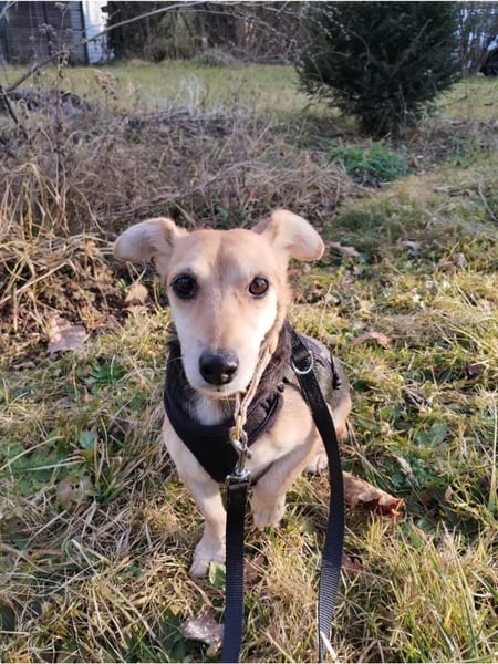 Draußen zeigt sich Fáni unbeeindruckt, und überwiegend mit Fahrzeugen und co stabil. Sie läuft moderat, brav an der Leine und ohne Hektik- immer öfter entdeckt sie auch die flotte Seite und läuft an der Schleppleine gerne voraus. Ihr Trainingsstand ist ihrem bisherigen Leben entsprechend, entwickelt sich aber stetig weiter, wenn man ihr Sicherheit gibt und keinen Druck ausübt. Sie hat bereits ihren ersten Restaurantbesuch, einen Ausflug in die Stadt und den Park gemeistert und wird bei liebevoller Führung sicher schnell weitere Fortschritte erzielen. Hundebegegnungen ignoriert sie.
