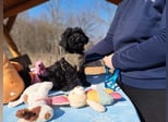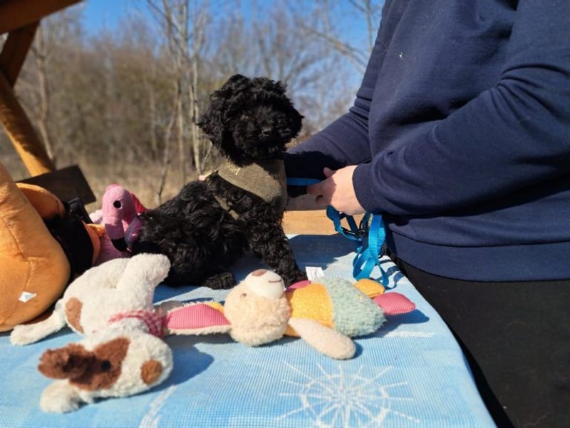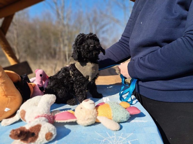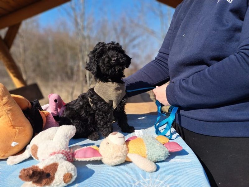 Die Endgröße können wir leider nie mit Gewissheit sagen, auch da der Vater unbekannt ist. Aber aufgrund der Größe der Mutter, wird er vermutlich klein bis mittelgroß bleiben. Wir vermuten Puli-Mix Gene. Bitte informieren Sie sich über die wunderbare Rasse und bedenken Sie, dass auch kleine Hunde ausgelastet und artgerecht beschäftigt werden wollen.