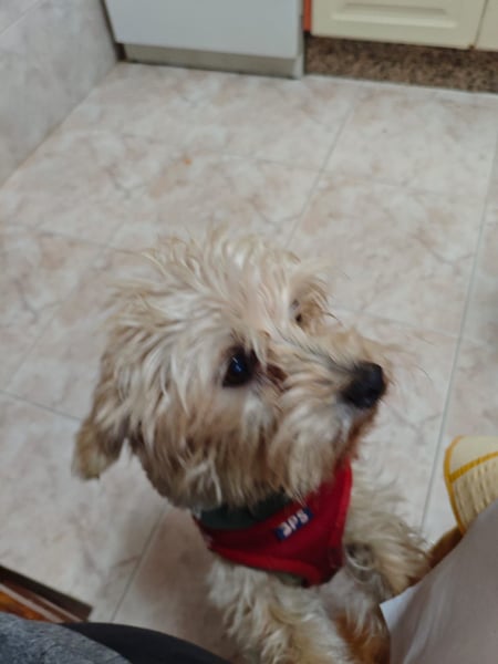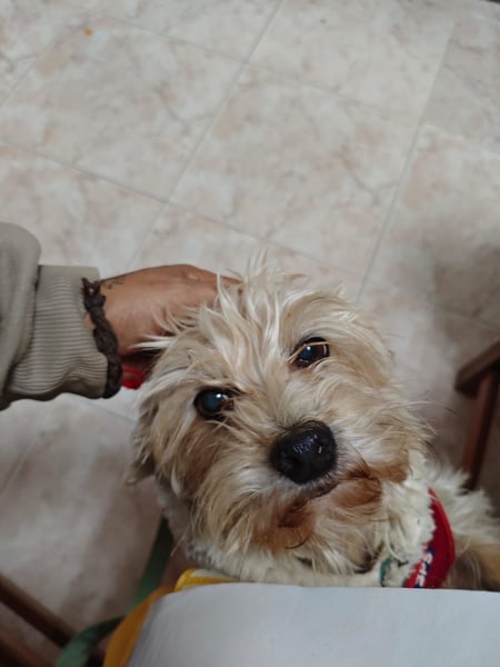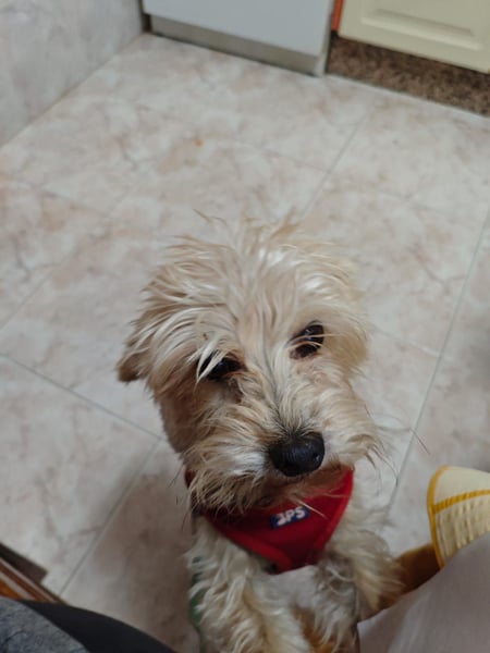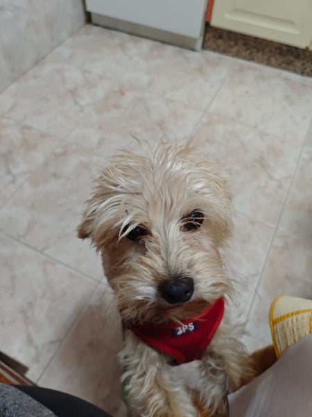 Als Montse ihn fand, war Fufu aufgrund seiner Erlebnisse sehr misstrauisch und zeigte aus Angst auch bissiges Verhalten. Mit viel Geduld, Ruhe und Zuwendung hat er jedoch gelernt, wieder Vertrauen zu fassen.