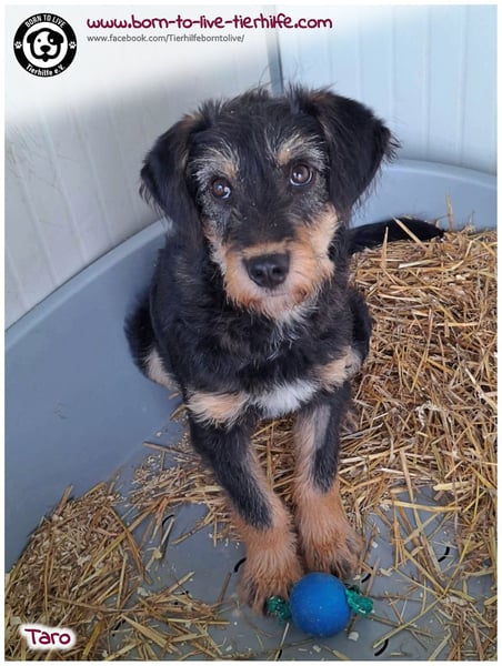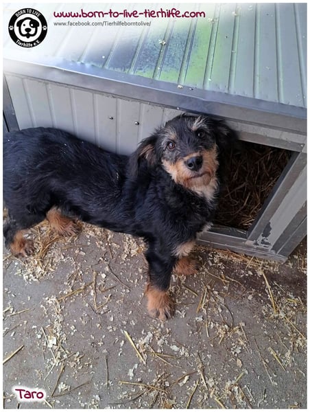 Taro hat in seinem kurzen Leben bereits die Schattenseiten der Welt kennengelernt. Bevor er in die Tötungsstation von Jászladány kam, überlebte er unter harten Bedingungen in einem heruntergekommenen Viertel auf der Straße. Dort erlebte er nicht nur Hunger, sondern auch menschliche Grausamkeit – Erfahrungen, die bei seiner sensiblen Hundeseele tiefe Spuren hinterlassen haben