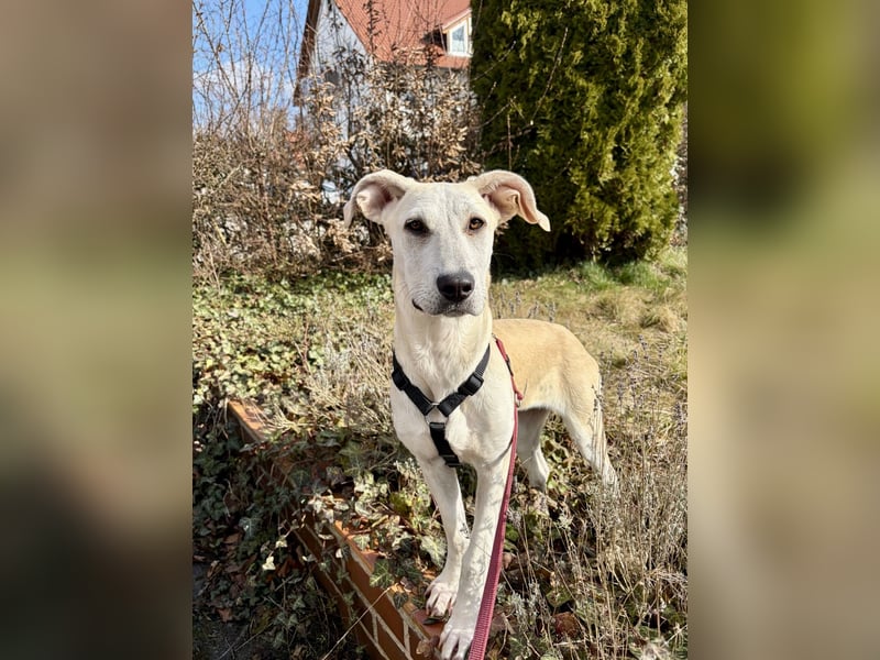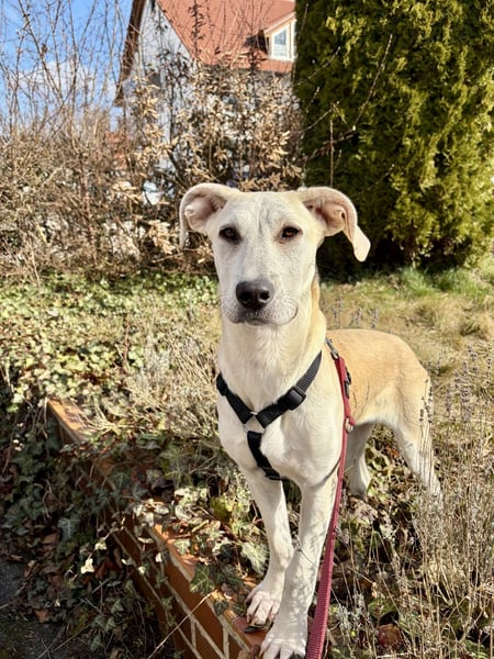 Lucy wird einmal mittelgroß (ca. 25 kg) und zeigt sich als unglaublich liebevolle, menschenbezogene Hündin. Sie sucht die Nähe, genießt jede Zuwendung und bindet sich eng an ihre Bezugspersonen. Wenn sie spielt, am liebsten mit ihrem Ball, zeigt sie ihre fröhliche, unbeschwerte Seite, die einfach nur berührt.