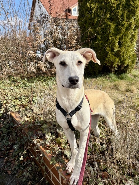 Natürlich bringt Lucy als junger Tierschutzhund auch Unsicherheiten mit. Besonders draußen ist sie noch vorsichtig und manchmal ängstlich. Doch sie lernt jeden Tag dazu und macht bereits schöne Fortschritte, sie kann sogar schon für kurze Zeit alleine bleiben und bleibt dabei entspannt.