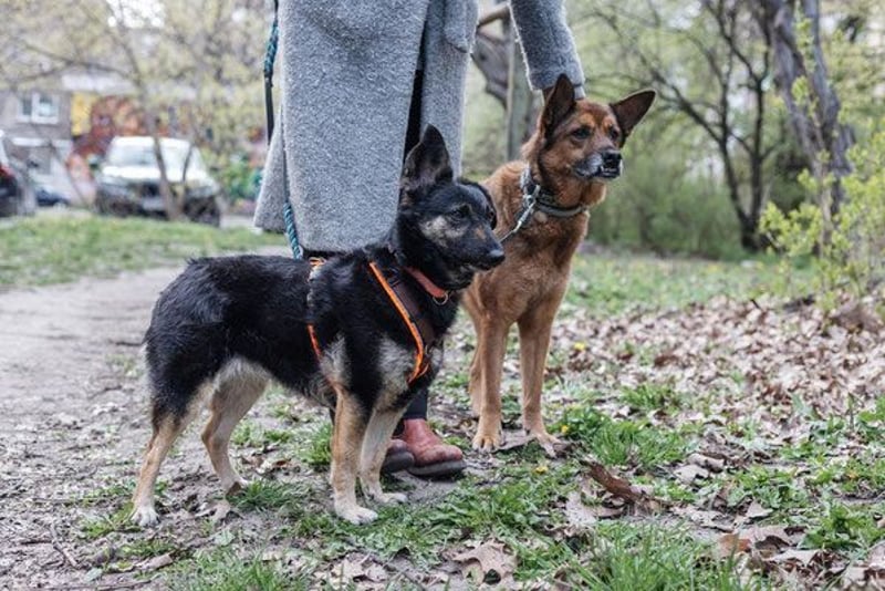 Damit sind wir auch schon beim Thema Stadttauglichkeit: In der Stadt fühlt sich Gaby nicht wohl. Autos, entgegenkommende Menschen und viele Geräusche machen ihr Angst. Sie kann damit umgehen und löst sich auch draußen, aber die meiste Zeit läuft sie mit eingeklemmter Rute und unruhig an der Leine hin und her. Sobald es ruhiger wird – zum Beispiel hinter einem Wohnblock ohne Verkehr oder in einem abgelegenen Park – entspannt sie sich deutlich.