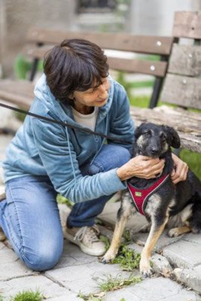 Nach einem Tag begann dann die „Klette-Phase“: Nachdem sie die Wohnung kannte, folgte sie ihrer neuen Pflegestelle auf Schritt und Tritt und ließ sie nicht mehr aus den Augen. Die Nacht verbrachte sie brav in ihrem Bett, und wenn „Madam“ dringend raus musste, kündigte sie das mit einem leichten Fiepsen an und wartete geduldig auf den Gassigang.