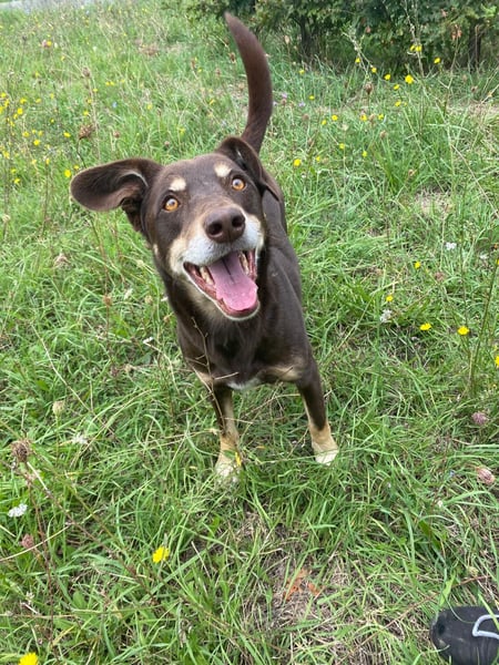 Er ist mit anderen Hunden verträglich. Anfangs ist er etwas zurückhaltend, aber mit Leckerlis lässt er sich gerne bestechen und dann klebt er förmlich an seinem Menschen.