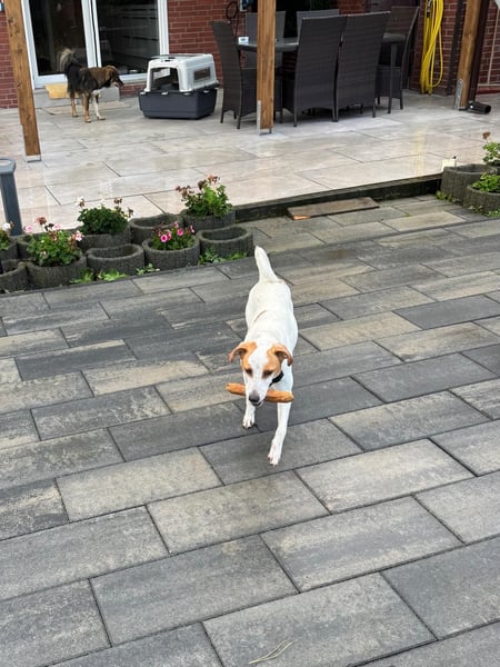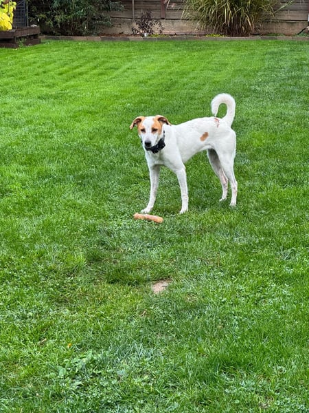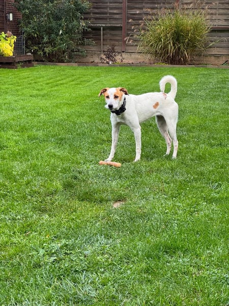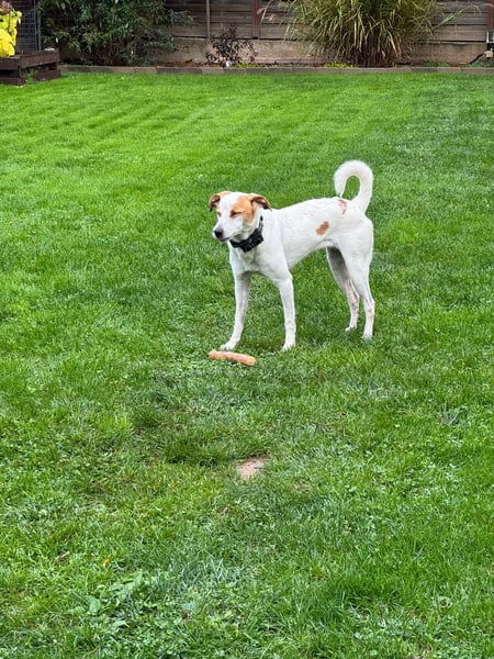 Berna ist seit Ende Oktober auf ihrer Pflegestelle. Sie ist mit anderen Hunden verträglich und geht gut an der Leine. Sie hat leichten Jagdtrieb, lässt sich aber gut lenken.