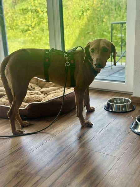 Nola ist eine wahre Traumhündin – zart, liebevoll und voller Lebensfreude, die nur darauf wartet, richtig erblühen zu dürfen. Man sieht ihr an, dass sie im Shelter viel durchmachen musste. Sie kam viel zu dünn und voller Angst zu ihrer Pflegestelle. Doch Tag für Tag zeigt sie mehr Vertrauen in Menschen und ihre Umgebung. Zuhause kann sie wunderbar zur Ruhe kommen und genießt jede liebevolle Nähe – Kinder mag sie besonders gern. Nola ist einfach ein herzensguter Begleiter, der bereit ist, sein ganzes Vertrauen und seine Liebe zu schenken.