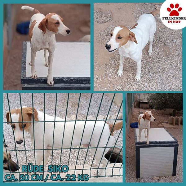 Siko ist ein mittelgroßer Bracken Mischlingsrüde. Er ist ein sehr menschenbezogener hübscher Rüde und freut sich sehr, wenn man ihm ein bisschen Zuwendung schenkt und streichelt. Er ist sehr aktiv und deshalb suchen wir für ihn Menschen, die ebenfalls aktiv sind und ihn körperlich und geistig gut auslasten können. Auch zur Ruhe kommen muss er erst noch lernen. Vermutlich hat Siko auch Jagdtrieb, ob er stark ausgeprägt ist, können wir leider nicht sagen.