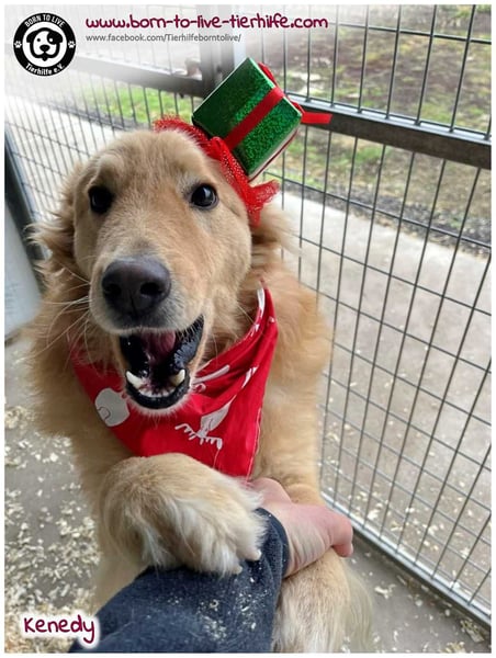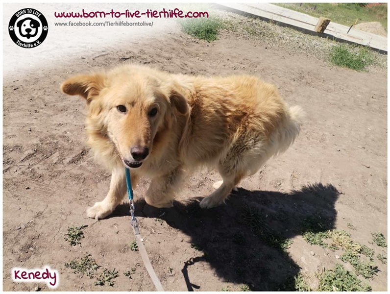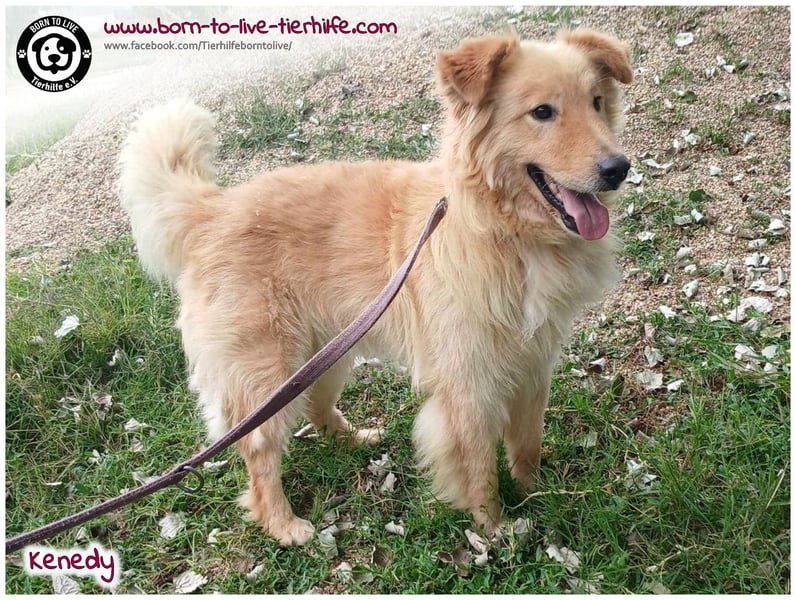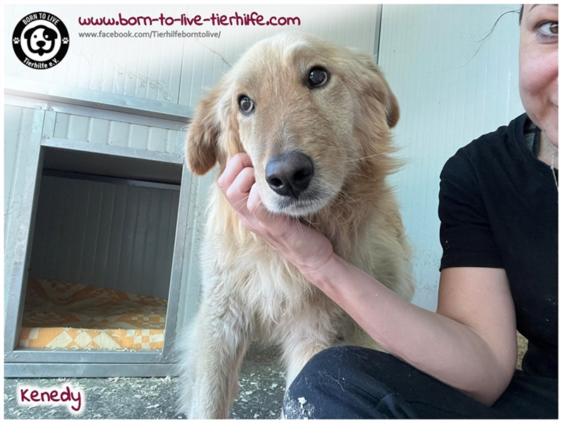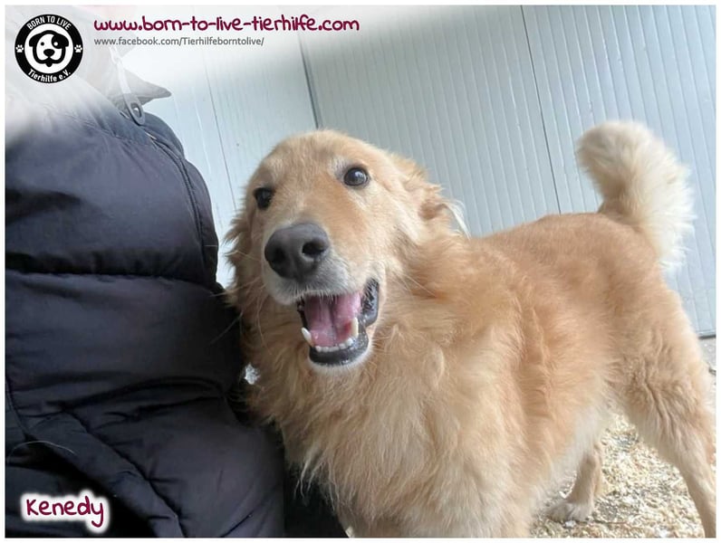Vom Wesen her ist KENEDY grundsätzlich ein sehr lieber Rüde und auch bildhübsch! Er mag seine Menschen sehr. Anfangs braucht er etwas Zeit, um Vertrauen zu fassen. Wir denken, dass er ein Golden-Retriever-Mix ist, dies ist jedoch nur eine Einschätzung unsererseits. Bei unsicheren Menschen kommt es auch schon mal vor, dass er knurrt und sich "nichts sagen lässt".