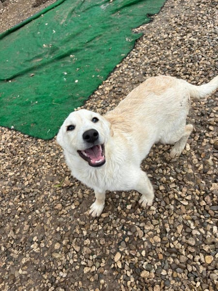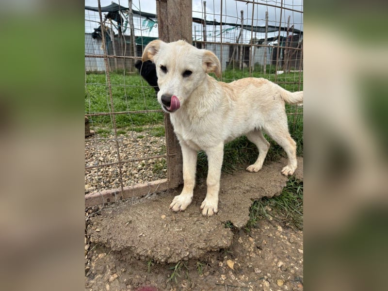 Dorotea scheint immer zu lächeln, sie geht freundlich auf den Menschen zu und spielt gerne mit den anderen Welpen.