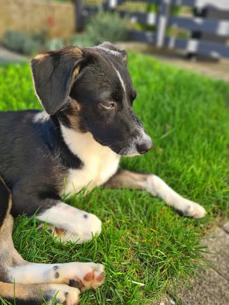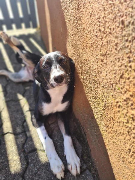 ich bin Phoebe – gerade mal 6 Monate jung, zierlich und mit meinem schwarz-weiß-braunen Fell ein kleiner Glückshund, sagt meine Pflegemami. Manchmal bin ich auch eine kleine Diva. Im Moment bin ich etwa 43 cm groß und werde wohl nicht mehr viel wachsen – also genau richtig, um mich überallhin mitzunehmen.