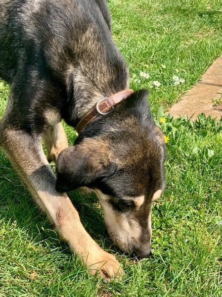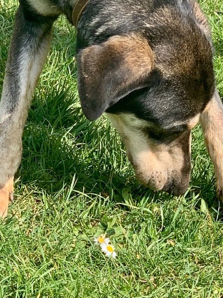 An der Leine laufen klappt auch schon recht gut, dabei ist sie an allem sehr neugierig und interessiert.
