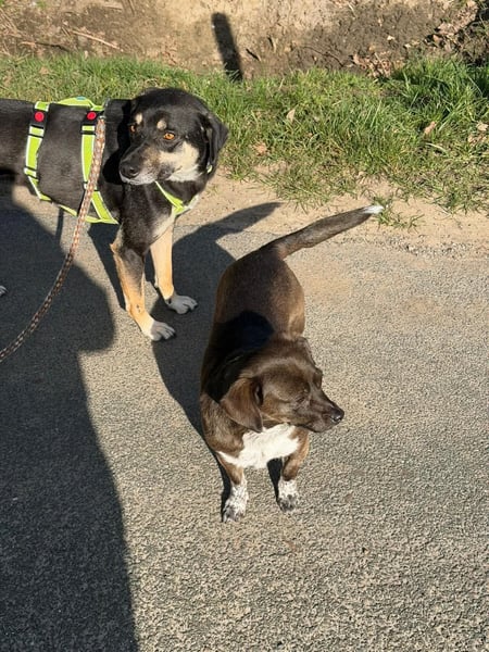 Draußen entdecke ich die Welt ganz in meinem eigenen Tempo – langsam und leise. In ruhigen Gebieten wie im Wald oder fernab vom Straßenverkehr laufe ich schön an der Leine und orientiere mich gut an meinem Menschen. Vorbeifahrende Autos oder plötzliche Geräusche erschrecken mich manchmal noch, aber ich bin danach gut ansprechbar und finde mit deiner Hilfe schnell wieder zurück zur Ruhe.