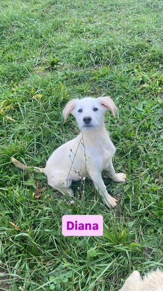 Diana wurde von der Strasse eingefangen und kam ins private Tierheim. Sie ist eine lebenslustige, neugierige, verspielte Welpe, die mit Artgenossen kein Problem hat. Sie wird langsam auch an Geschirr und Leine gewöhnt.