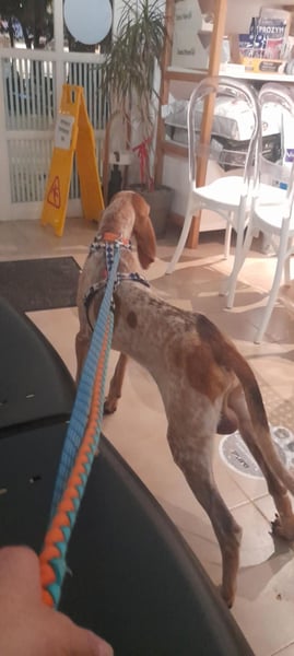 Gut zu wissen: Feivel ist ein reinrassiger Jagdhund. Er braucht eine gute Auslastung z.B. durch Nasenarbeit.
