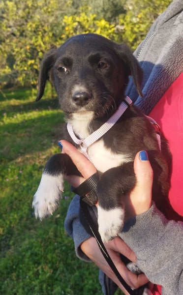 wurde zusammen mit ihren Geschwistern vor dem Haus einer Tierschützerin ausgesetzt. Die Tierschützerin nahm Feeby und die beiden anderen Welpen bei sich auf, brachte sie an einen sicheren Ort und kümmerte sich liebevoll um sie.