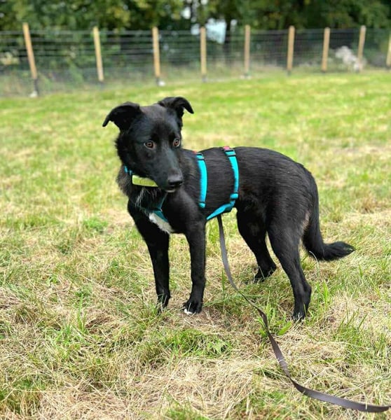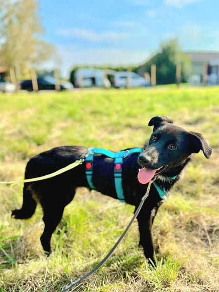 Dezra ist neugierig und lernt schnell. In unbekannten Situationen ist sie manchmal noch unsicher, kann sich jedoch mit Hilfe ihrer Bezugsperson gut auf Neues einlassen. Stadtverkehr stört sie nicht. Bei fremden Menschen ist sie anfangs vorsichtig, nach ruhiger, freundlicher Annäherung aber offen für Kontakt.