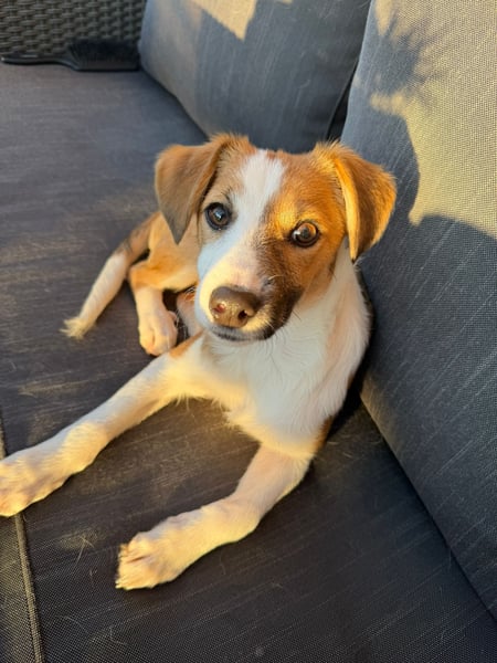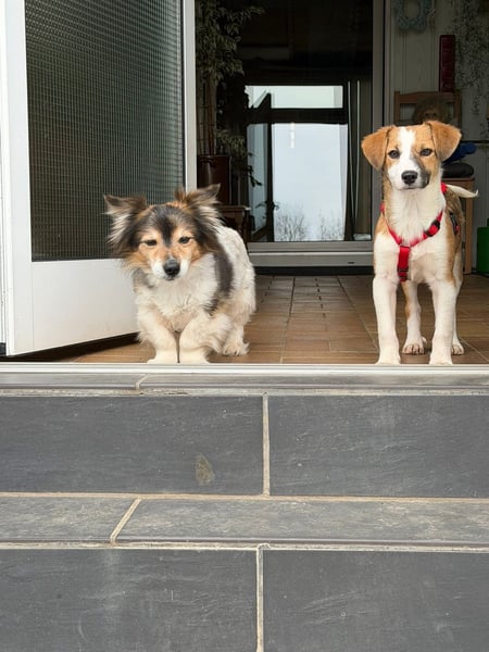 Hanni ist insgesamt eine eher ruhige Hündin, kann in neuen Situationen oder bei lauten Geräuschen (z. B. Verkehr) aber noch etwas unsicher reagieren. Mit Geduld und einem sicheren Umfeld wird sie hier sicher weiter an Selbstvertrauen gewinnen.