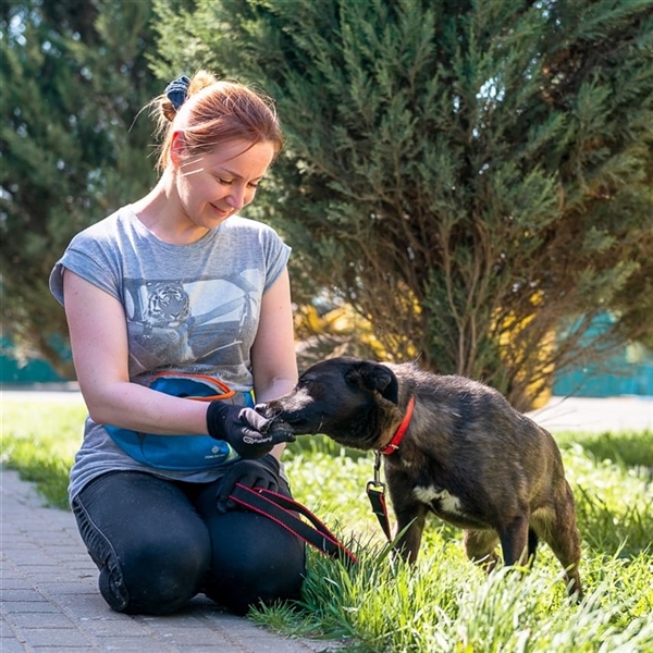 Ursula läuft wunderbar an der Leine, sie liebt Spaziergänge und Gesellschaft. Sie ist eine aktive und neugerige Hündin. Fremden Menschen gegenüber kann Ursula erstmal vorsichtig sein. Mit Menschen die sie kennt, ist die Maus offen und fröhlich.