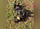 Zagi spielt gern, obwohl er manchmal etwas übereifrig sein kann. seine Lieblingsspielzeuge sind anregende Spielzeuge wie Kongs, Puzzlebälle, Tennisbälle, Tauziehen und harte Gummiringe. Plüschtiere hingegen sind tabu und gehen innerhalb einer Minute kaputt. Er liebt es, Handtücher und andere Textilien wie Beute zu zerreißen. Er spielt besonders gern mit den Berner Sennenhund-Hündinnen auf seiner Pflegestelle.