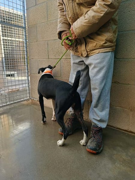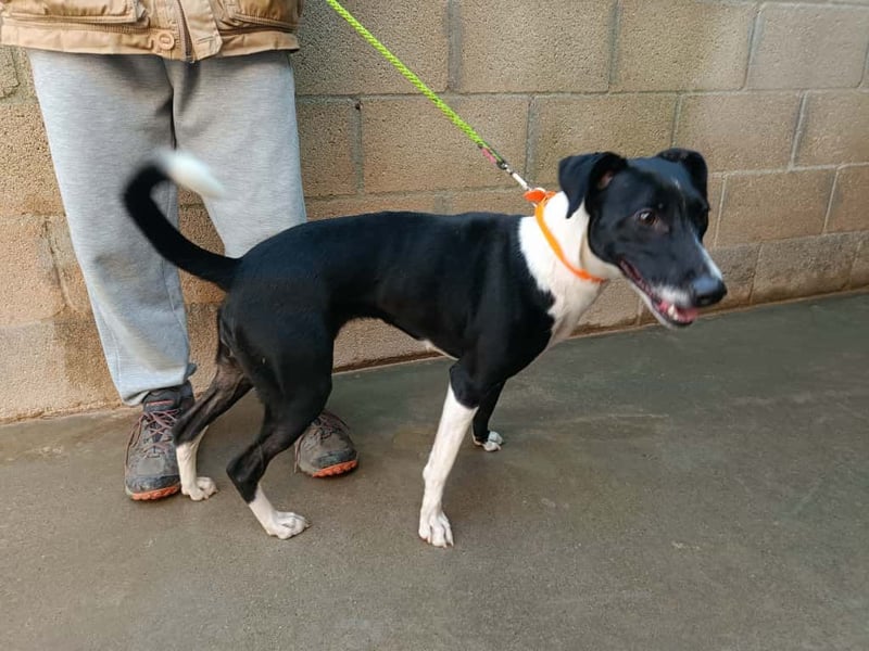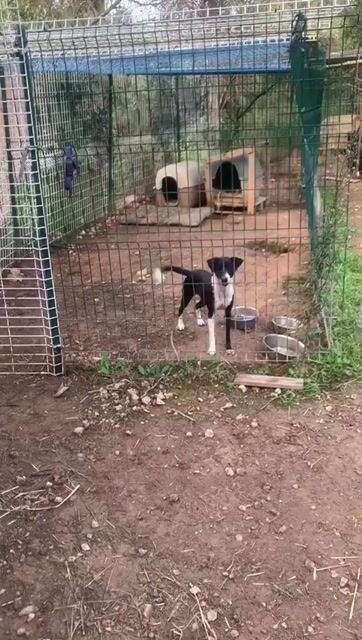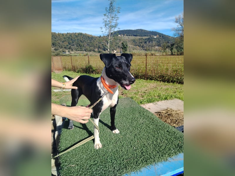 Fiti stammt ursprünglich aus einer Perrera. In ihrer Vergangenheit hatte sie keinen sicheren Start ins Leben: Sie gehörte zeitweise einem Hausbesetzer, vor dem sie große Angst hatte. Als sie ihn einmal wieder sah, reagierte sie panisch – obwohl sie ansonsten keine Ängste zeigt. Beim zweiten Aufgreifen entschieden die Helfer, sie nicht erneut zu diesem Mann zurückzugeben, und baten darum, Fiti zu übernehmen, damit sie endlich in Sicherheit ist.