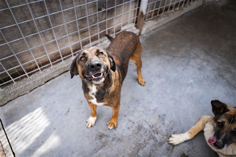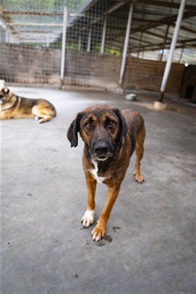 Muskat ist einer der letzten Hunde, die von seiner ursprünglichen Gruppe noch im Zwinger sitzt.