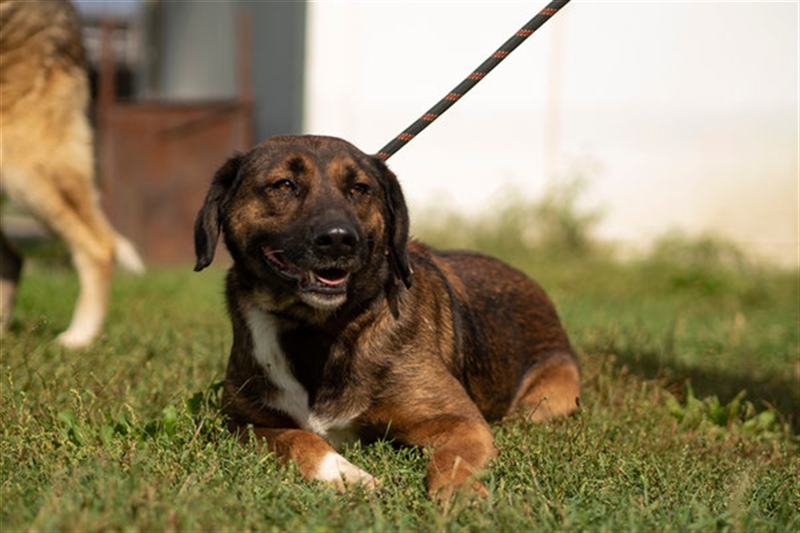 Wenn wir ihn aus seinem Zwinger holen, läuft Muskat brav und gelassen an der Leine mit. Das Bellen links und rechts wenn wir durch das ganze Tierheim müssen, um auf die Wiese zu kommen, beeindruckt ihn nicht besonders. Muskat ist ein Hund, der bisher noch nicht so richtig aus sich rausgekommen ist. Wir vermuten, dass er nach eine längeren Eingewöhnungszeit noch einmal richtig aufblühen und vielleicht auch aufgeweckter und neugieriger werden wird. Wir wünschen uns für ihn Adoptanten, die zunächst erst einmal keine Erwartungen an ihn stellen, sondern ihm dabei helfen anzukommen und sich zu entfalten.