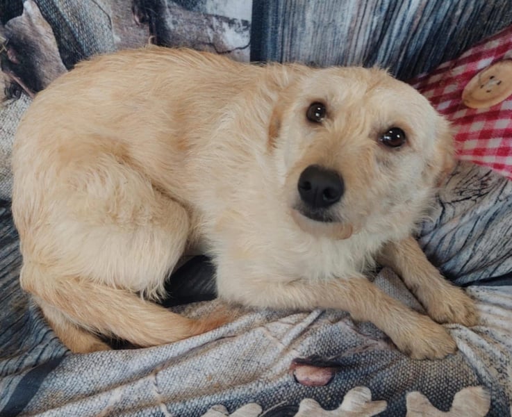 Ich bin eine mittelgroße Mischlingshündin mit weichem, weiß-cremefarbenem Fell – richtig kuschelig, sagen meine Menschen. Meine großen Kulleraugen kann ich super einsetzen,