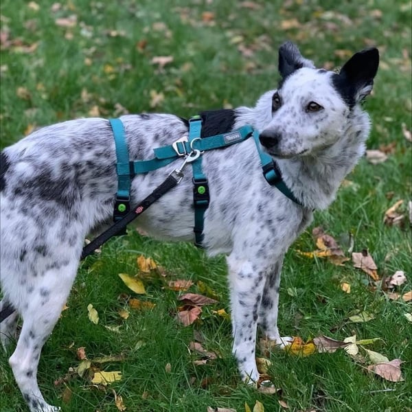 Mit anderen Hunden kommuniziert er klar und freundlich, ist gut sozialisiert und draußen ein sehr angenehmer Begleiter.