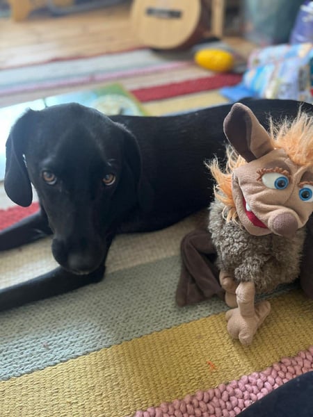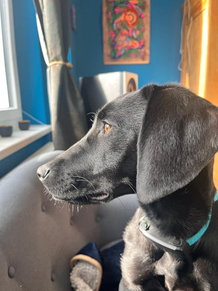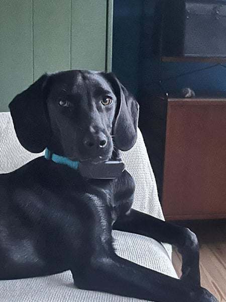 Alleinbleiben ist für bis zu 5 Stunden möglich, sollte jedoch nicht täglich oder mehrfach am Tag stattfinden. Teilweise zeigt sie dabei noch Stress, z. B. durch das Zerbeißen ihrer Decke. Feste Abläufe und Unterstützung (z. B. Beschäftigung wie ein Kong) helfen ihr dabei.