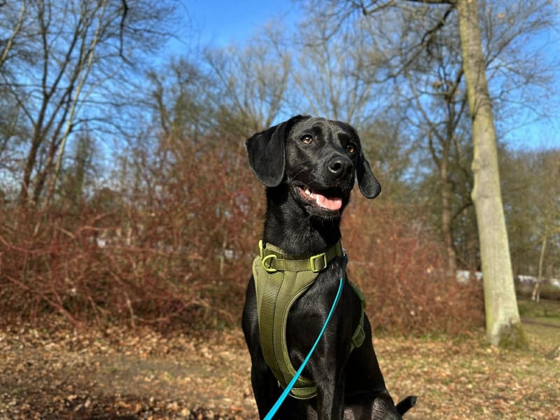 An der Leine ist Juni aktuell noch sehr dynamisch und zieht, da sie schnell aufgeregt und abgelenkt ist. Hier besteht noch Trainingsbedarf. Hundebegegnungen verlaufen freundlich – sie möchte jeden Hund begrüßen, ist dabei aber oft sehr aufgeregt.