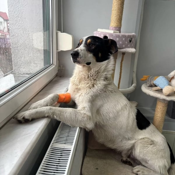 Aufgrund einer alten Verletzung am Bein möchte Toni keine langen Strecken laufen. Kurze Spaziergänge bereiten ihm keine Probleme.