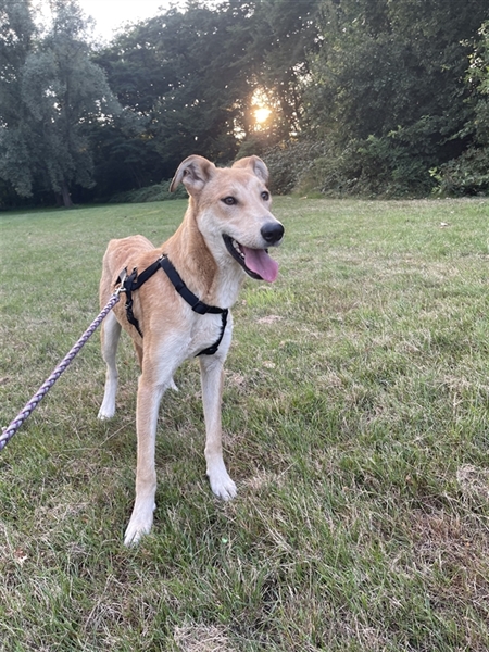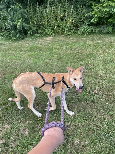 Draußen findet es Bolt nicht so toll. Daher ist für Bolt ein ländliches Zuhause gut. Außenreize stellen noch ein Problem dar. Für Bolt suchen wir Menschen, die sich mit einem ängstlichen Hund auskennen und mit einem Hund der vornehmlich Haus und Garten liebt, klar kommen.