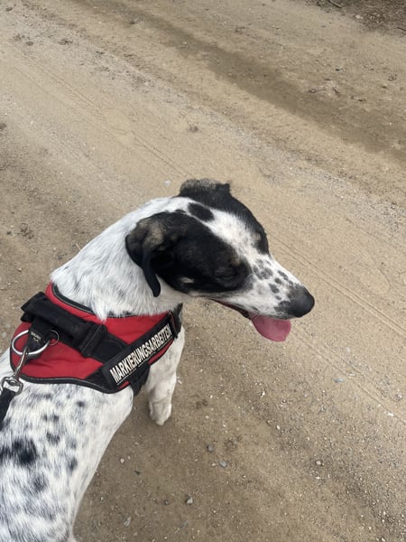 Adam hat einen wunderbaren Charakter: Er ist sehr sozial, sowohl mit anderen Hunden als auch mit Menschen, und liebt es zu spielen und zu kuscheln. Zudem ist er sehr klug und lernt schnell. Mittlerweile kann Adam auch schon super an der Leine gehen, auch wenn er manchmal noch ein wenig ängstlich ist. Er bekommt das Hochspringen vor Freude immer besser in den Griff, doch weil das noch nicht ganz perfekt ist, wäre eine Familie ohne sehr kleine Kinder ideal.