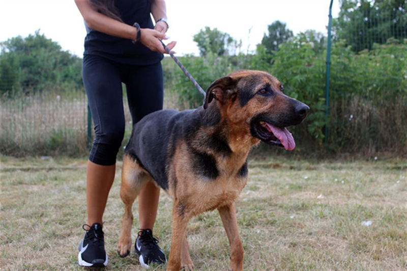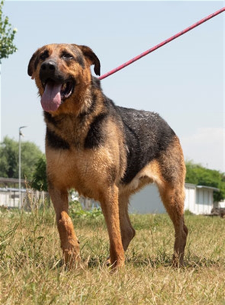 Er lebt in einem gemeinsamen Zwinger mit vielen anderen Hunden. Angesichts seiner Energie ist es gut, dass er Zugang zu einem Garten hat, in dem er rennen, spielen und alle unterhalten kann!