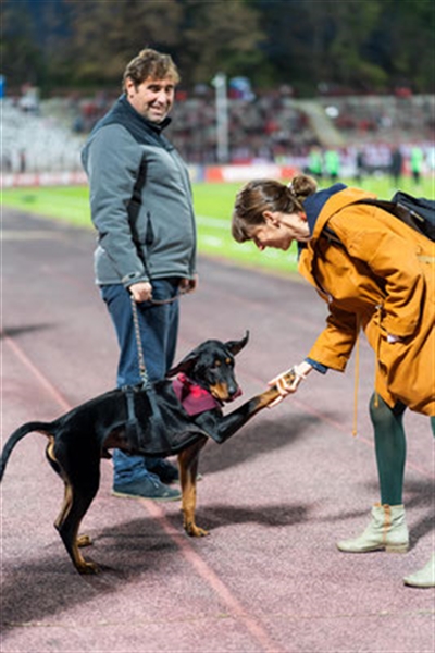 Das wohl spannendste Ereignis für Woodie war vor einer Woche, als er die Mannschaft eines der größten Fußballclubs des Landes besuchen durfte. Die Mannschaft hatte beschlossen, mit Hunden auf die Situation in Bulgarien aufmerksam zu machen und ihre Fans dazu zu ermutigen, zu adoptieren anstatt zu kaufen. Woodie hat den Besuch gelassen gemeistert und ist souverän mit aufs Spielfeld gegangen. Wie man in dem Video sieht, hätte er beim Aufwärmspiel am liebsten selber mitgemischt.