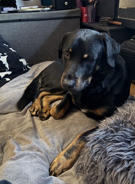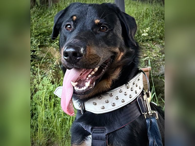 Sputnik ist ein kerngesunder und robuster Mix aus Rottweiler x Labrador (Mama) und Deutschem Schäferhund x Appenzeller Sennenhund (Papa).