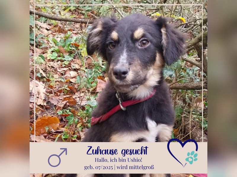 Nun sucht Ushio, der Jungrüde mit einem Blick, der direkt ins Herz geht, sein Zuhause.