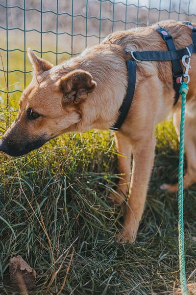 Ende November durfte der blonde, kastrierte Rüde unsere Ehrenamtlichen auf einen Stadttest begleiten. Er zeigte sich hier, wo Autos fuhren, Menschen unterwegs waren, aufgeregt, aber nicht ängstlich. Man sollte ihm Zeit geben, um seine Ungeduld langsam regulieren zu lernen. Eigentlich ist er ein ziemlich normaler Junghund - viele von ihnen müssen erst Lernen mit Aufregung und Frust umzugehen. Snickers ist ein herzlicher Typ, mit dem man riesige Freude haben kann. Wir empfehlen unbedingt schon zu Beginn eine kompetente Hundeschule zu besuchen um ihn in seiner Entwicklung zu fördern und Problemverhalten wie Leinenpöbelei entgegen zu wirken. Snickers ist ein Hund mit viel Potential, ein toller Begleiter zu werden.